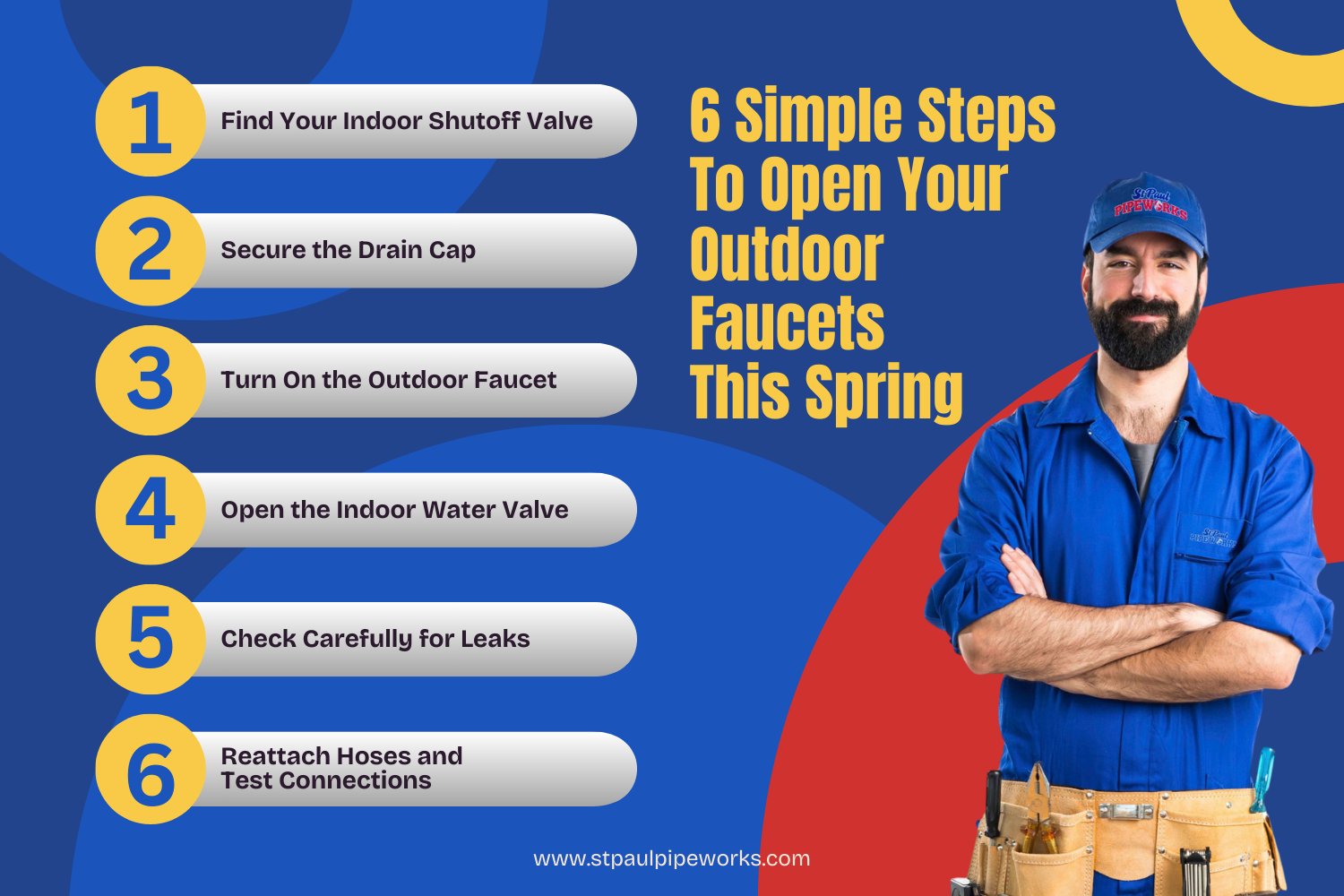If you have questions or discover problems while opening your outdoor faucets, don’t hesitate to contact St Paul Pipeworks. Proper maintenance now can save you headaches and money down the road.